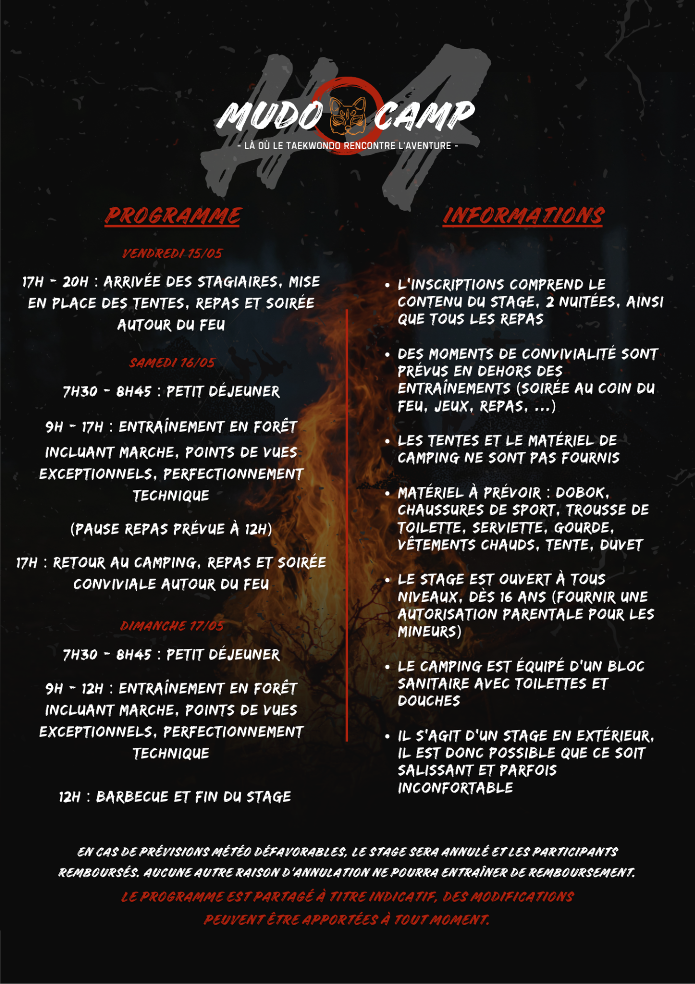 Vivez l'expérience unique du Mudo Camp : des entraînements en pleine nature, des points de vues exceptionnels, de la cohésion de groupe, des soirées autour d'un feu de camp 🔥
